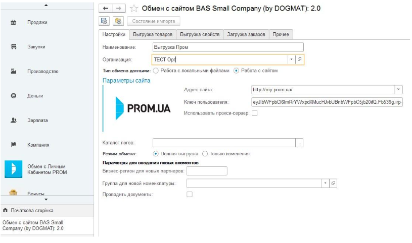 Рішення дозволяє налаштувати обмін для конфігурацій BAS з порталом Prom.ua.